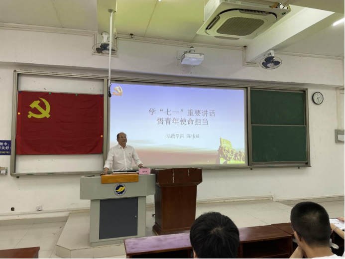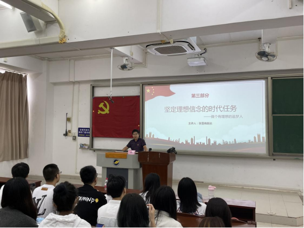 党委书记陈伟斌、院长张显伟在钟海楼为学院152名学生讲授2021年秋季学期“思政第一课”。