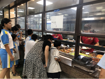 图2 游园学生在第三食堂体验打饭就餐