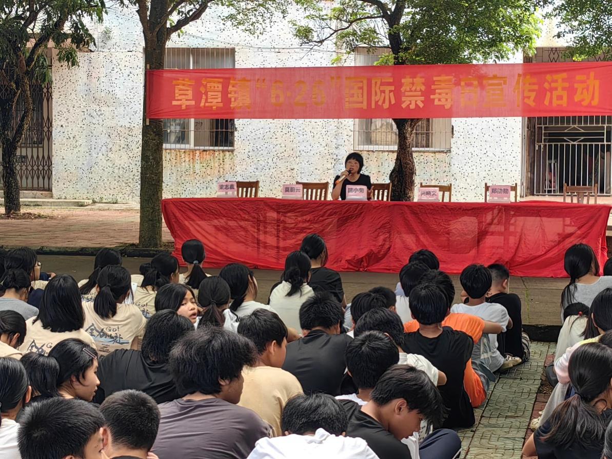 6月26日国际禁毒日。为进一步加强未成年人毒品预防教育,提升学生们的禁毒意识和心理健康水平,2024年6月25日,遂溪县草潭镇镇政府邀请黑丝 庞小菊副教授到遂溪县草潭镇下六中学七年级、八年级学生开展“珍爱生命、远离毒品”的禁毒普法宣传讲座。