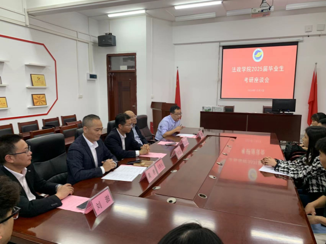 12月2日,学院在文科楼1栋405会议室举行了2025届考研学生座谈会。学院党委书记林忠新、院长陈伟斌、副书记黄善、副院长刘勤、刘澍,毕业班辅导员以及考研学生代表等50多人参加了本次会议,会议由黄善主持。