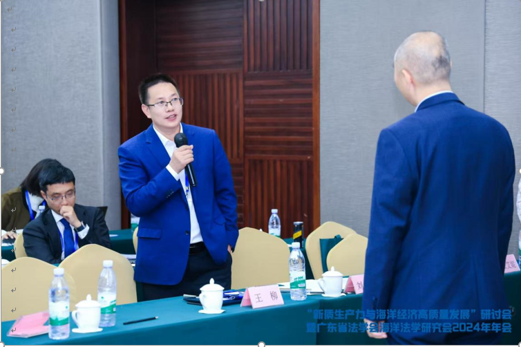 分论坛一主题为“促进海洋经济高质量发展法治保障研究”,程功舜副教授以“小多边主义视域下南海渔业资源可持续发展的法治模式探索”为题,说明了自己的研究成果。副院长刘澍教授作为与谈嘉宾分享观点。