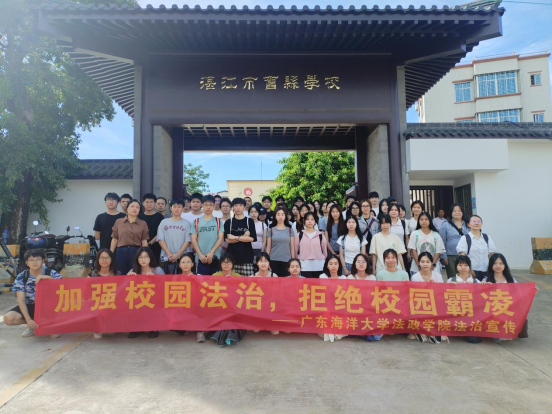 在旧县学校,曹亚君老师、杨文燕带队,与杨娟、曲明姬、黄琼老师,司法局李媚明、陈靖雯、陈子雄、冯王力、王秋月同志,以及法学1225、法学1226全体同学,以及旧县小学谢业盛校长、湖光镇禁毒办彭楚殷同志共同开展预防未成年人犯罪、禁毒主题宣传活动。并通过组织趣味十足的法律问题抢答活动,为该校学生带来了一堂生动活泼的法治教育课。