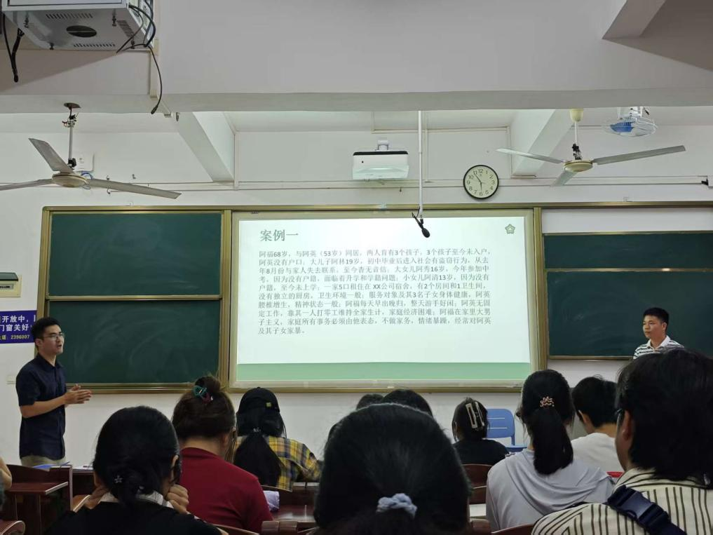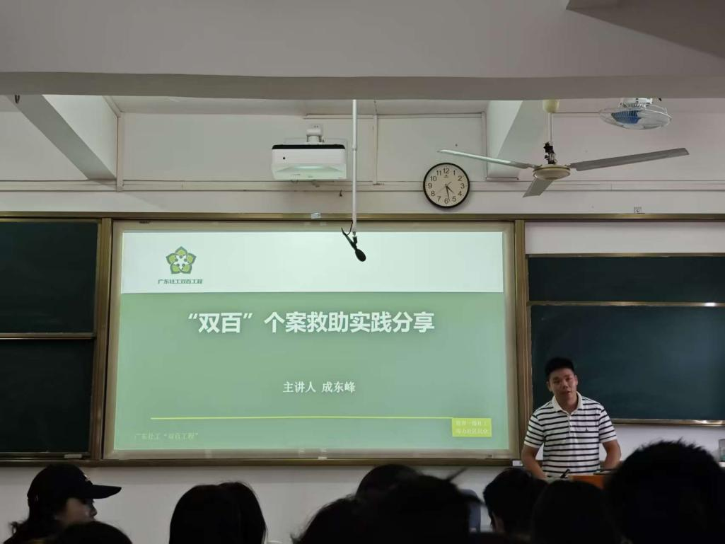 在分享会上,社工成东峰围绕“什么是个案工作”“个案工作的原则与理论”“实务操作指引”及真实案例解析等内容,系统梳理了个案救助的全过程。他结合湛江市“双百工程”中的典型服务案例,生动讲解了如何在实际工作中运用社会工作理论、建立专业关系、评估服务对象需求并规划介入策略。同学们通过鲜活的实务场景,深化了对个案工作方法与价值的理解。