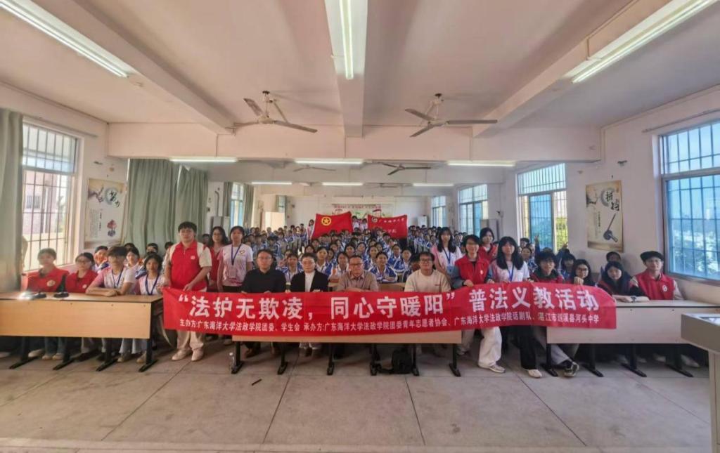 乡村振兴路,普法护航行。为助力遂溪县河头镇乡村振兴进程,发挥“一学院一乡村”党建帮扶重要作用,提升乡村中学生法治素养。2025年11月26日,学院团委、学生会联合青年志愿者协会、话剧队等单位,赴湛江市遂溪县河头中学开展“法护无欺凌,同心守暖阳”校园反欺凌普法义教活动。黑丝