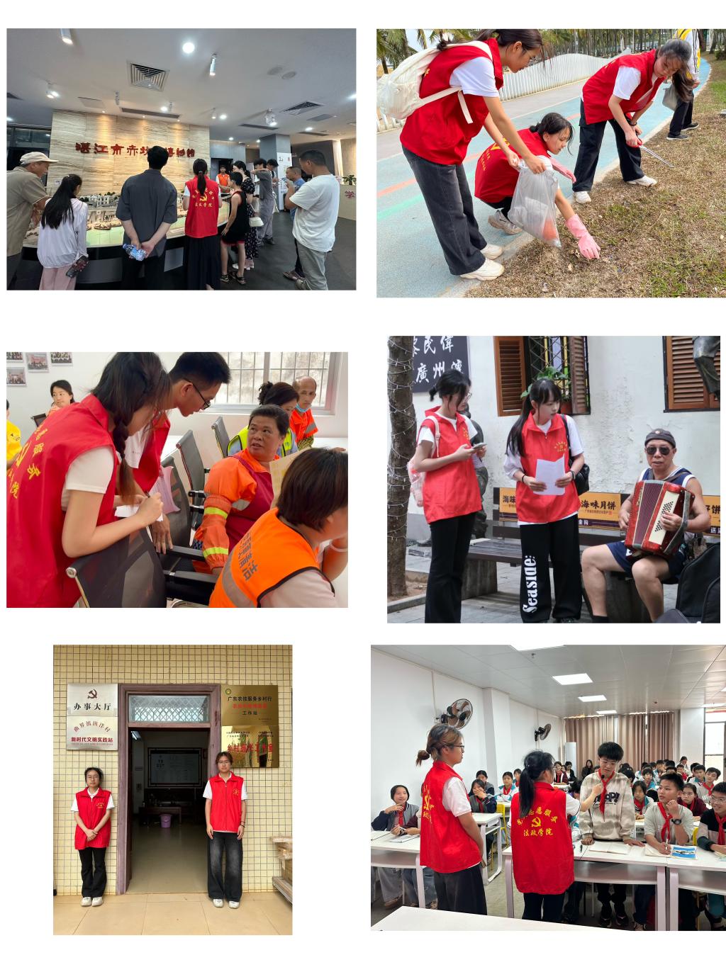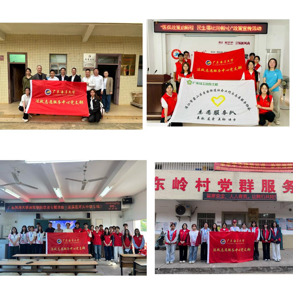 深耕社会实践,贡献服务地方“青春智慧”。支部充分发挥学科优势,组织党员深入基层开展系列实践。赴赤坎博物馆、老街开展红色调研,形成的专题报告为地方文旅发展提供决策参考;联合社工站进社区,为新业态劳动者群体精准普及医保政策,服务民生需求;远赴徐闻县设立“双百行动”法律服务点并开展法治讲座,将优质法治资源送达乡村,助力基层治理与乡村振兴;在金沙湾湿地公园开展净滩与游客调研活动,以专业方法服务生态文明建设。