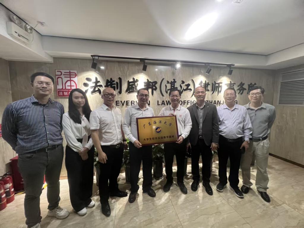 与广东法制盛邦(湛江)律师事务所正式签署大学生校外实践教学基地建设协议,并举行揭牌仪式。此次合作标志着双方在法学教育与实践融合方面迈出坚实一步,共同致力于培养高素质法律人才。