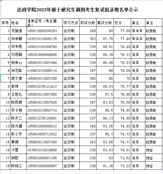 现将2023年硕士研究生调剂考生复试拟录取名单公示如下,公示时间十个工作日,2023年4月12日至2023年4月26日。如有异议,请以书面材料向学院反馈。