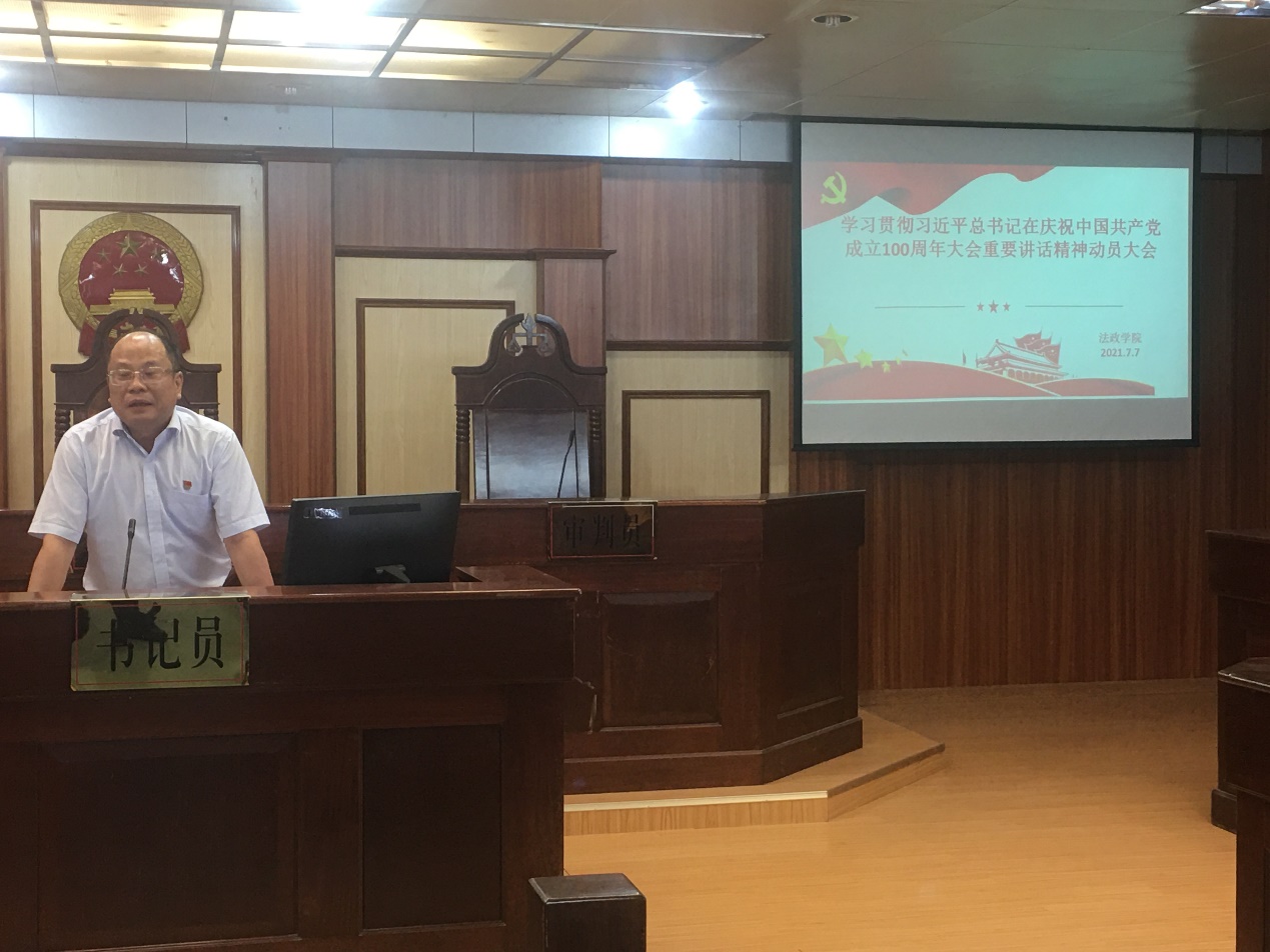 党委在湖光校区教学主楼模拟法庭召开了学习贯彻习近平总书记在庆祝中国共产党成立100周年大会上重要讲话精神教师、干部动员大会。会议由张显伟院长主持、陈伟斌书记作动员讲话,黑丝