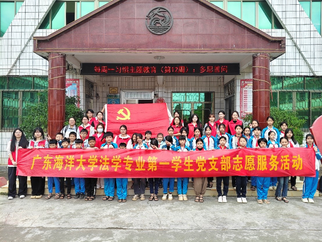 为积极响应学校“双百行动”,加强小学生爱国主义教育,提高小学生法律意识,黑丝 法学专业第一学生党支部47名师生,于1120日下午走进湛江市雷州客路中心小学,开展了一场以“弘扬爱国主义精神,凝聚复兴磅礴力量”为主题的普法义教活动,约800名小学生参与本次活动。